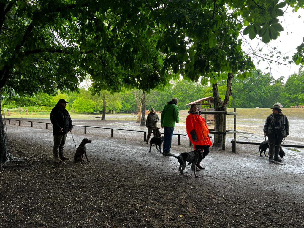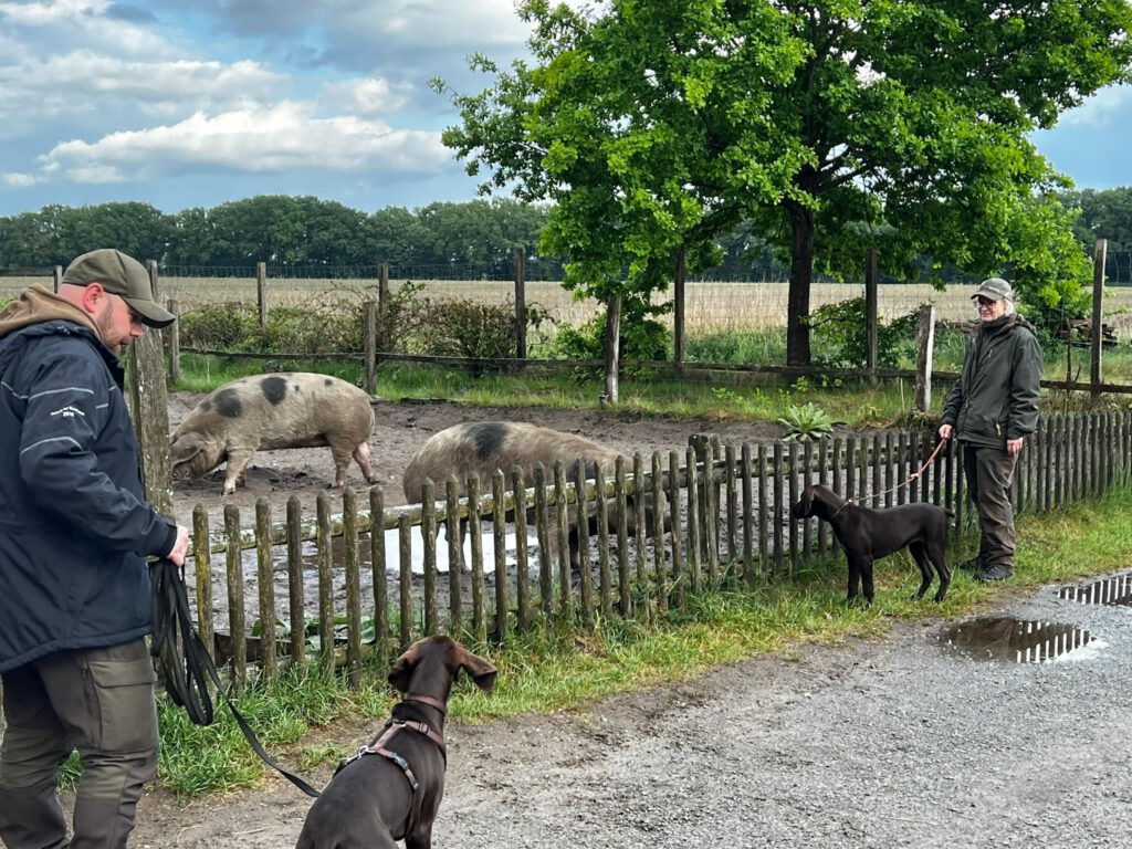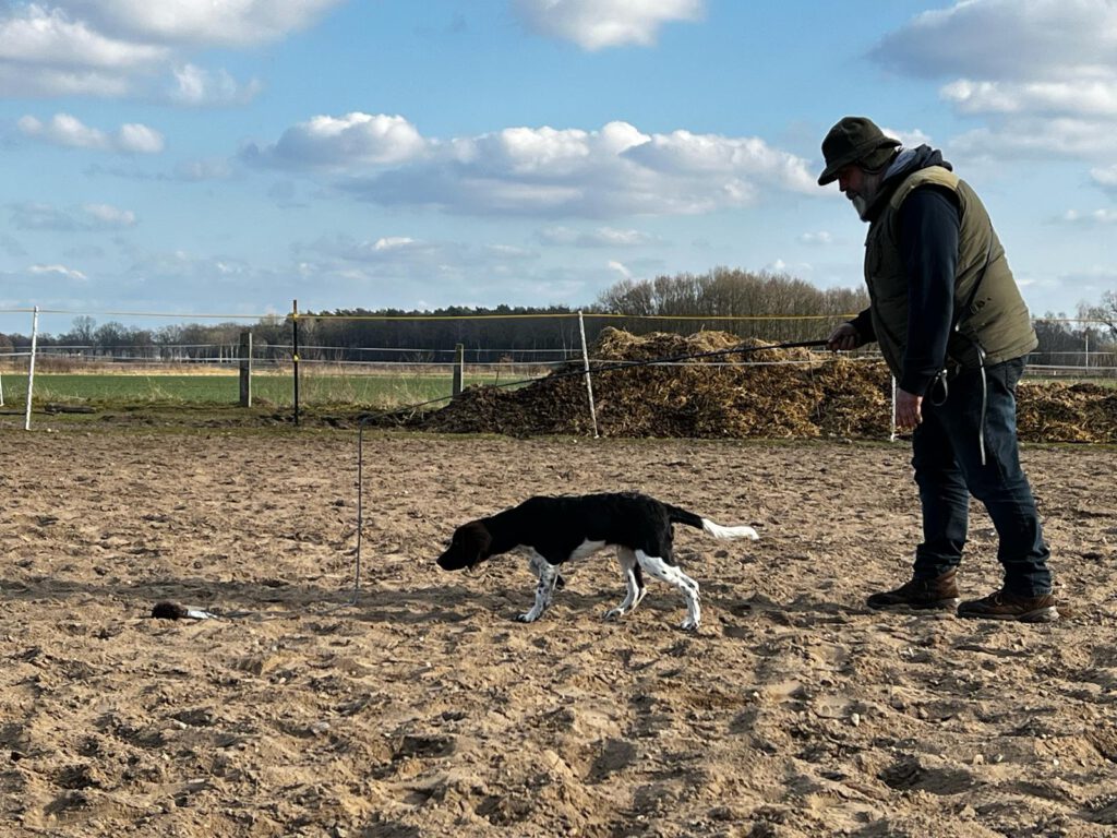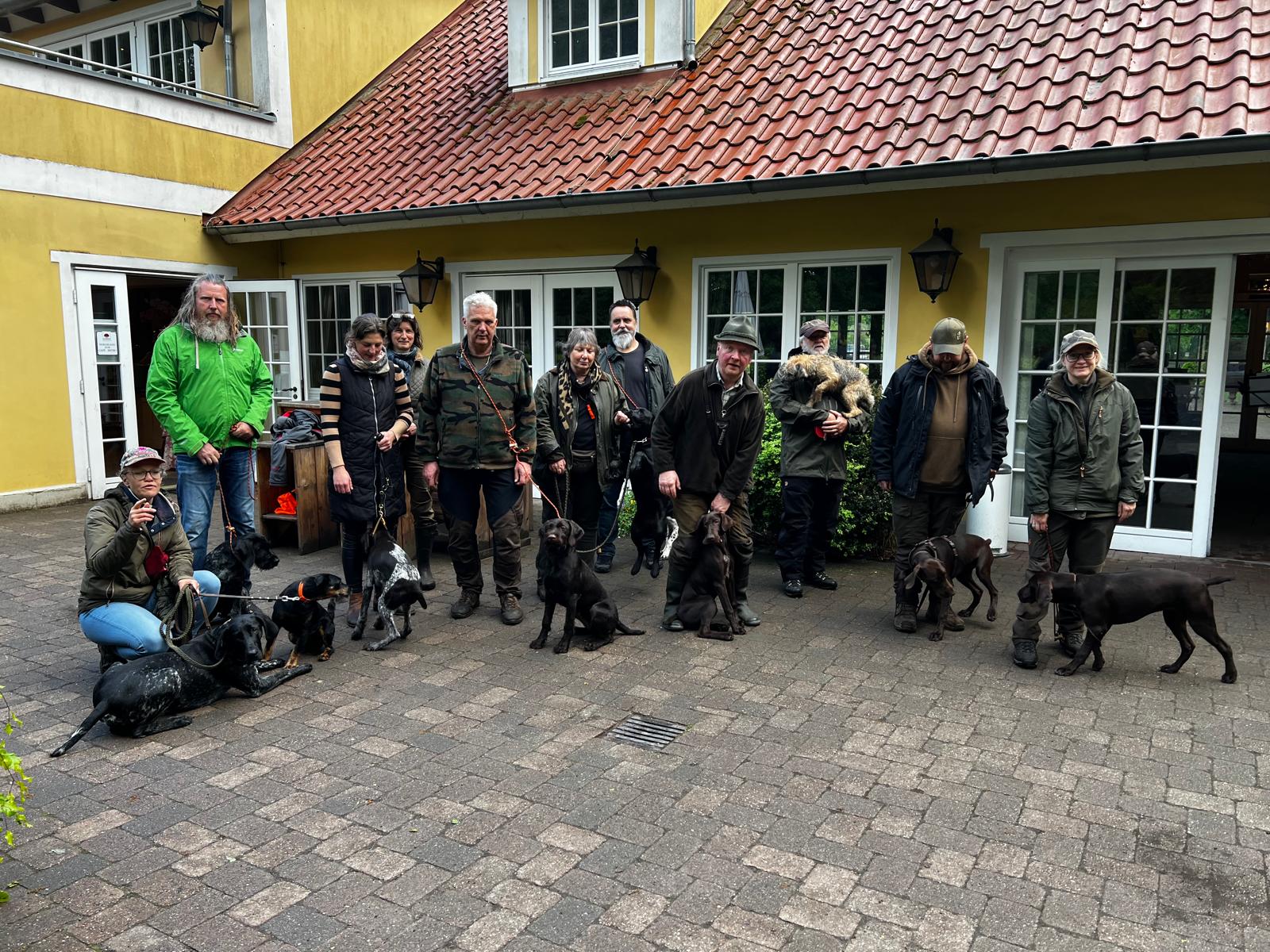 Die Teilnehmer trafen sich in verschiedenen Revieren und Örtlichkeiten rund um Scheeßel. Während des Kurses lernten die Welpen neben vielen jagdlichen Dingen auch, dass Regenschirme nicht böse, auch glatte Matten prima zum Ablegen geeignet und Bademäntel und Halskrausen schwierig anzuziehen sind.